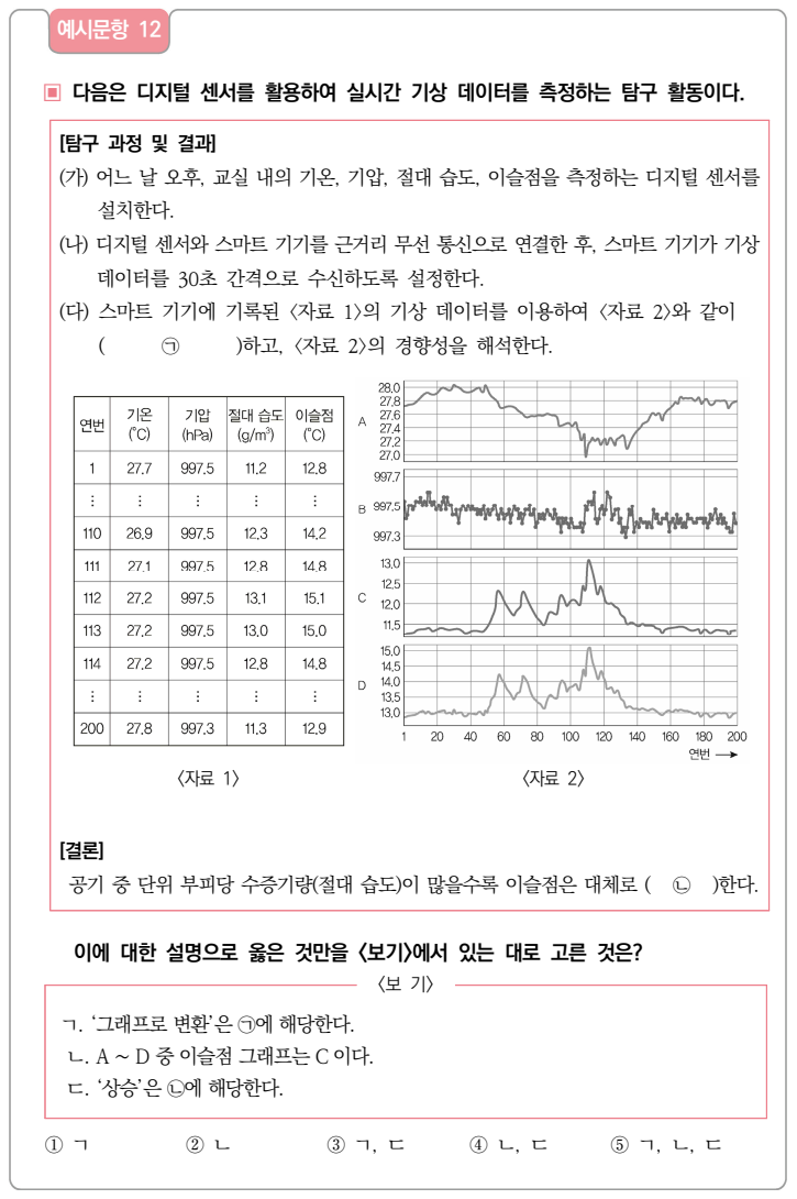 유형 2: 탐구 과정 및 자료 해석형 (예: 예시문항 3번, 7번, 12번)
