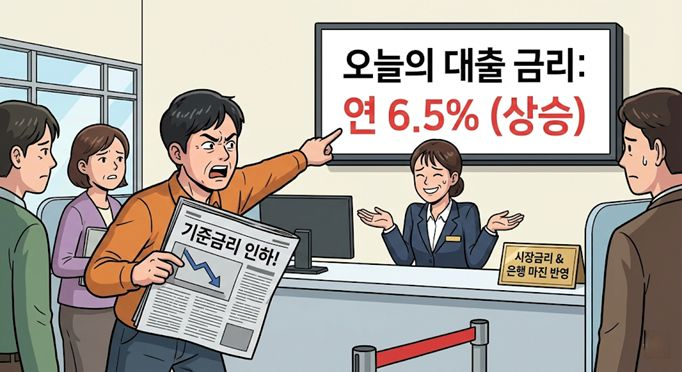 즉, '가산금리(은행 마진)'와 '시장 상황' 때문에 기준금리 인하 효과가 묻혀버리는 것입니다.
