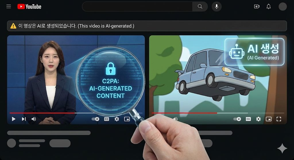 - 특징: 캡처를 하거나 편집을 해도 이 '디지털 지문'은 쉽게 지워지지 않습니다. 플랫폼에 업로드하는 순간, 서버가 이 지문을 읽고 자동으로 "AI 생성 콘텐츠" 라벨을 붙여버립니다.