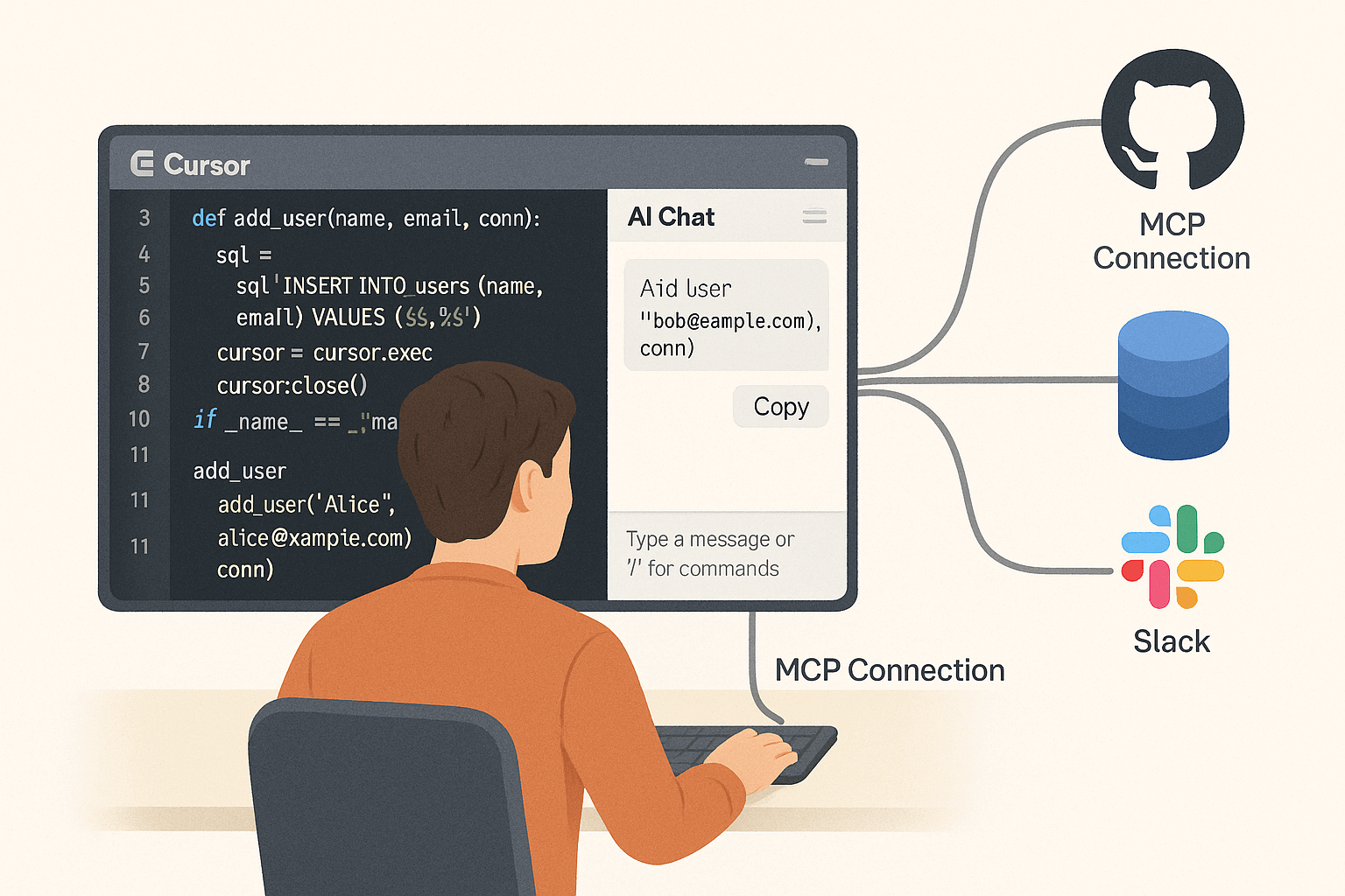 - 개발자 도구 (IDE): AI 코딩 비서로 유명한 Cursor IDE가 대표적인 MCP 호스트예요. Cursor 안에서 MCP를 통해 GitHub 저장소 관리, 데이터베이스 조회, Notion 페이지 접근 등 다양한 작업을 AI의 도움을 받아 직접 수행할 수 있죠.